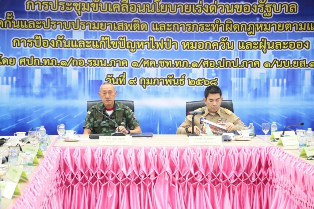พันเอก ฐิต์รัชช์ สมบัติศิริ รองเลขานุการกองทัพบก/โฆษกกองทัพบก นำคณะสื่อมวลชนสายทหารลงพื้นที่เยี่ยมชมการปฏิบัติงานของเจ้าหน้าที่ทหารชายแดนร่วมกับส่วนราชการในพื้นที่ จ.กาญจนบุรี ณ ศุลกากรด่านพุน้ำร้อน เพื่อติดตามการปฏิบัติงานและเข้าร่วมการประชุมขับเคลื่อนนโยบายเร่งด่วนของรัฐบาลในการสกัดกั้นและปราบปรามยาเสพติด และการกระทำผิดกฎหมายตามแนวชายแดน การป้องกันและแก้ไขปัญหาไฟป่า หมอกควัน และฝุ่นละออง โดยมี พลโท อมฤต บุญสุยา แม่ทัพภาคที่ 1 ผู้บัญชาการศูนย์ปฏิบัติการกองทัพภาคที่ 1 พร้อมด้วยหัวหน้าส่วนราชการที่เกี่ยวข้องเข้าร่วมการประชุม ซึ่งเป็นการบูรณาการทำงานร่วมกันระหว่างกองกำลังสุรสีห์, มณฑลทหารบกที่ 17, หน่วยบัญชาการสกัดกั้นและปราบปรามยาเสพติดสารตั้งต้นและเคมีภัณฑ์ชายแดนภาคตะวันตก (นบ.ยส.17), ศูนย์สั่งการชายแดนไทยกับประเทศเพื่อนบ้านจังหวัดกาญจนบุรี และส่วนราชการในพื้นที่ อาทิ ศุลกากร, สำนักงานตรวจคนเข้าเมือง, จังหวัดกาญจนบุรี, องค์การบริหารส่วนจังหวัดกาญจนบุรี และตำรวจภูธรจังหวัดกาญจนบุรี เพื่อรักษาความสงบสุข สกัดกั้นยาเสพติดและสิ่งผิดกฎหมายไม่ให้รั่วไหลเข้ามาในประเทศไทย
