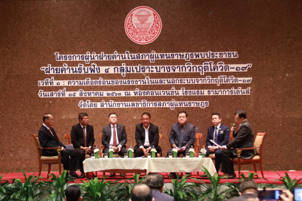 โรงแรมรามาการ์เด้นส์ 15 ส.ค.-ผู้นำฝ่ายค้านชี้รัฐบาลล้มเหลวช่วยแรงงานตกงานจากสถานการณ์โควิด-19 เหตุไร้มาตรการจูงใจเอกชนให้ชะลอเลิกจ้าง ไร้แผนช่วยหางานใหม่ ทำตัวเลขคนตกงานพุ่งเฉียด 8 ล้านคน