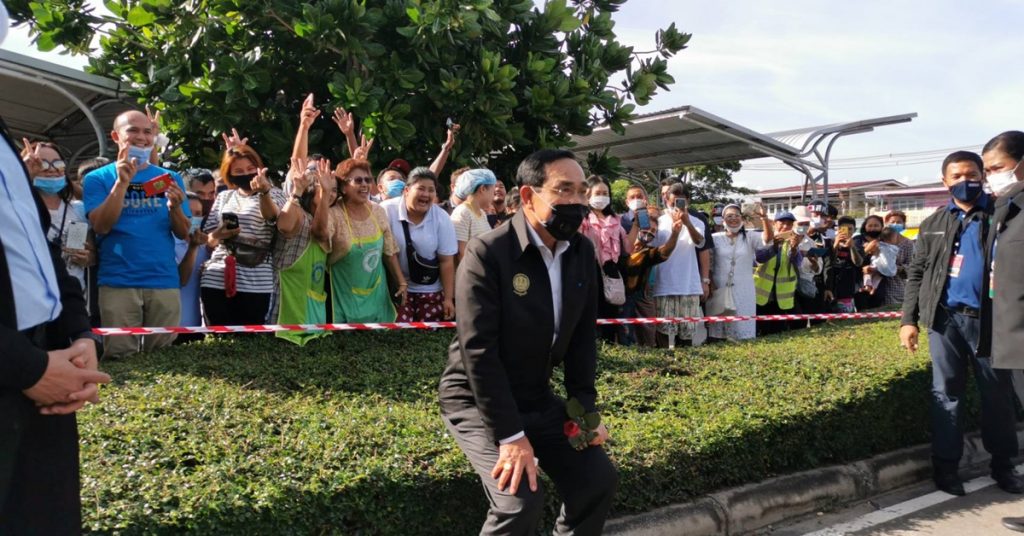 ระยอง 24 ส.ค.- นายกรัฐมนตรี พบผู้ประกอบการท่องเที่ยว ภาคธุรกิจ พ่อค้า แม่ค้า ที่ตลาดเทศบาลบ้านเพ ขอชาวระยองรับฟังข้อมูลจากทุกฝ่าย อย่าฟังความข้างเดียว มีนักเรียนมาขอถ่ายรูป ชาวบ้านให้กำลังใจเพียบ ขณะที่ด้านนอกตลาดบ้านเพ “ไมค์ ระยอง” บุกชูสามนิ้ว ก่อนถูกตำรวจจับกุม