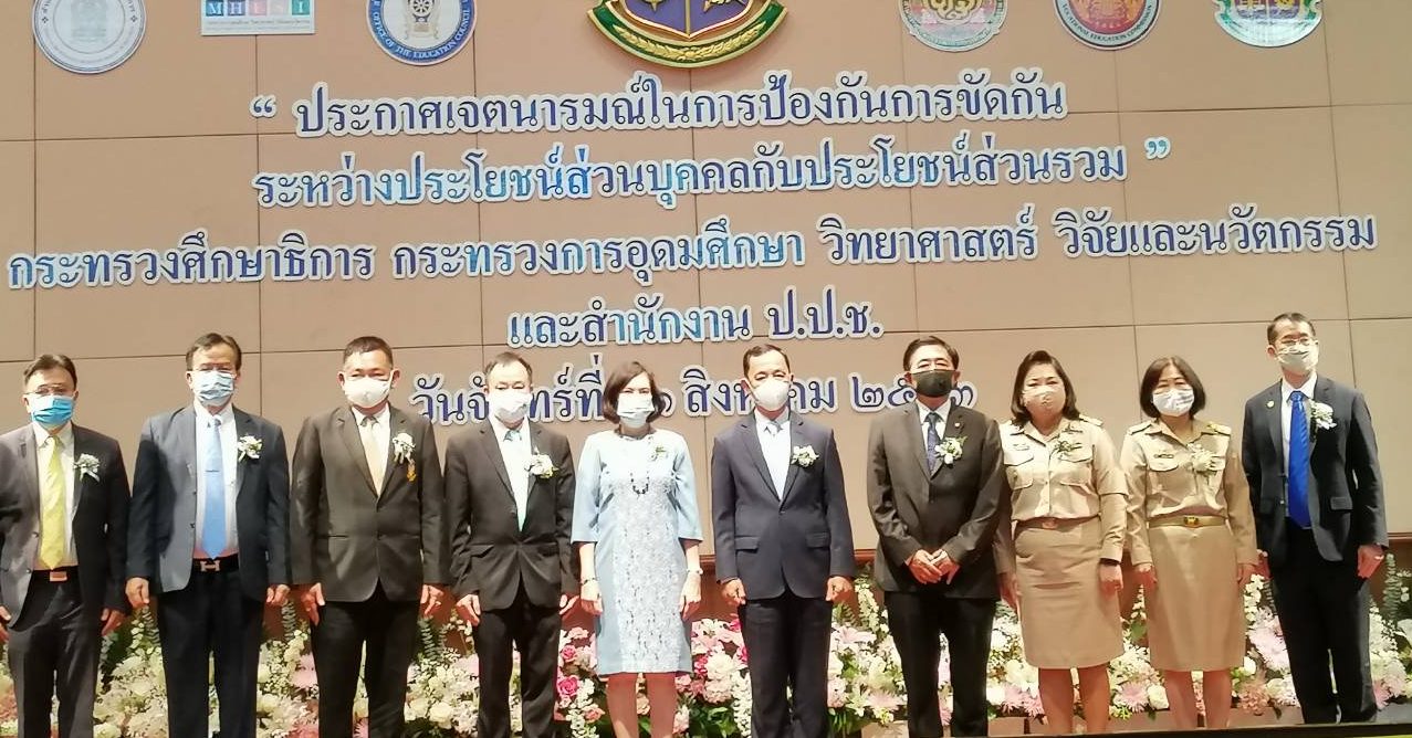 สำนักงานป.ป.ช. 31 ส.ค.-ป.ป.ช.- ศธ.-อว. ประกาศเจตนารมณ์ป้องกันการขัดกันระหว่างประโยชน์ส่วนตัวกับส่วนรวม หวังลดเรื่องร้องเรียน เพิ่มดัชนีรับรู้ทุจริต