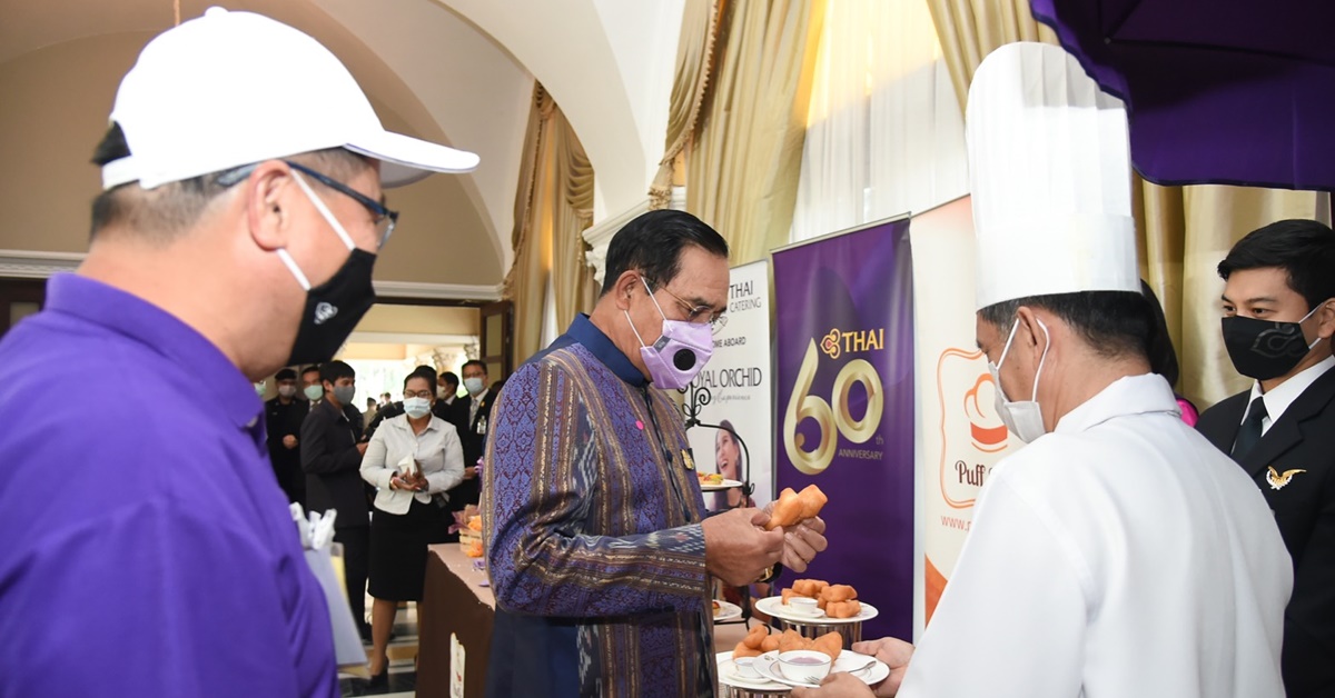 ผู้สื่อข่าวรายงานว่า ก่อนการประชุมคณะรัฐมนตรี พล.อ.ประยุทธ์ จันทร์โอชา นายกรัฐมนตรีและรัฐมนตรีว่าการกระทรวงกลาโหม เยี่ยมชมผลิตภัณฑ์ เบเกอรี่ Puff & Pie ของบริษัท การบินไทย จำกัด (มหาชน) ซึ่งมีนายชาญศิลป์ ตรีนุชกร รักษาการแทนกรรมการผู้อำนวยการใหญ่ บริษัท การบินไทยฯ นางวรางคณา ลือโรจน์วงศ์ กรรมการผู้จัดการฝ่ายครัวการบิน นำเชฟการบินไทยร่วมประชาสัมพันธ์ “อร่อยล้นฟ้า@สีลม ไม่ต้องบิน ก็ฟินได้” โดยนายกรัฐมนตรีชมขนมประเภทต่าง ๆ รวมทั้งทดลองชิมปาท่องโก๋และสังขยามันม่วงการบินไทย พร้อมชมว่า อร่อย