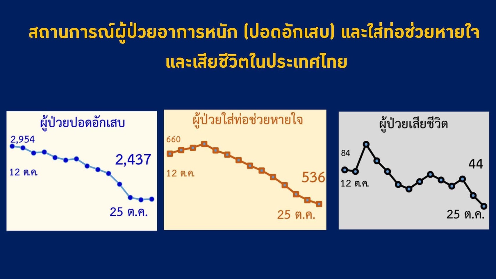 พญ.อภิสมัย ศรีรังสรรค์ ผู้ช่วยโฆษกศูนย์บริหารสถานการณ์การแพร่ระบาดของโรคติดเชื้อไวรัสโคโรนา 2019 (โควิด-19 : ศบค.) เปิดเผยสถานการณ์โควิด-19 ในวันนี้ (25 ต.ค.) พบผู้ติดเชื้อรายใหม่ 8,675 ราย และติดเชื้อในเรือนจำ 201 ราย ทำให้ยอดผู้ติดเชื้อสะสมการแพร่ระบาดตั้งแต่วันที่ 1 เม.ย.- 25 ต.ค.64 จำนวน 1,830,294 ราย หายป่วยกลับบ้าน 9,589 ราย หายป่วยสะสม 1,712,890 ราย ยังรักษาอยู่โรงพยาบาล 100,042 ราย อาการหนัก 2,437 ราย ใส่ท่อช่วยหายใจ 536 ราย และเสียชีวิต 44 คน โดยผู้เสียชีวิตพบในกลุ่มผู้สูงอายุและผู้ป่วยโรคเรื้อรัง ซึ่งผู้เสียชีวิตส่วนใหญ่เป็นพื้นที่ภาคใต้