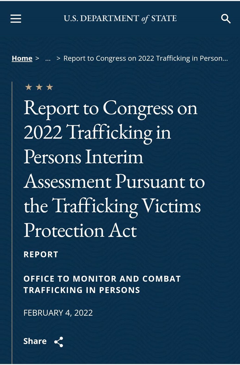 16 กุมภาพันธ์ 2565 พล.ต.อ.ธรรมศักดิ์ วิชชารยะ รองเลขาธิการนายกรัฐมนตรีฝ่ายการเมือง ในฐานะกรรมการผู้ทรงคุณวุฒิ ในคณะกรรมการป้องกันและปราบปรามการค้ามนุษย์ (ปคม.) รายงานว่า พล.อ.ประวิตร วงษ์สุวรรณ รองนายกรัฐมนตรี ในฐานะประธานกรรมการ ปคม. ได้รับทราบผลการจัดทำรายงานความก้าวหน้าการต่อต้านการค้ามนุษย์ต่อสภาคองเกรสสหรัฐอเมริกา (Report to Congress on 2022 Trafficking in Persons Interim Assessment Pursuant to the Trafficking Victims Protection Act) โดยสำนักงานติดตามและต่อต้านการค้ามนุษย์ กระทรวงการต่างประเทศสหรัฐอเมริกา หรือ J/TIP Office แล้ว โดย พล.อ.ประวิตร ได้กำชับเร่งรัดหน่วยงานที่เกี่ยวข้องขับเคลื่อนงานให้ก้าวหน้า ยกระดับมาตรฐานสู่สากล และให้แล้วเสร็จภายในสิ้นเดือนมีนาคม 2565 ตามวงรอบของการประเมินจัดลำดับเทียร์ ในรายงานประจำปี 2565 เพื่อให้ไทยกลับขึ้นไปอยู่ในกลุ่มเทียร์ 2 ให้ได้ ตามรายงาน 2022 TIP Interim Assessment สหรัฐอเมริกาจัดทำเฉพาะ 45 ประเทศที่ถูกจัดอันดับในกลุ่มเทียร์ 2 เฝ้าจับตามอง ในปี 2564