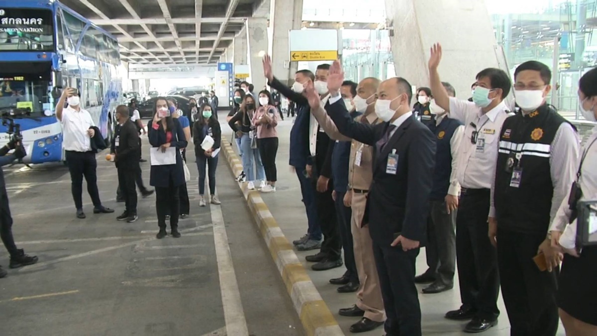 เมื่อเวลา 12.05 น. วันนี้ (5 มี.ค.) กลุ่มคนไทยจากยูเครน ชุดที่ 5 จำนวน 45 คน เดินทางด้วยเครื่องบินออกจากโปแลนด์ มาถึงไทย โดยสายการบินเอมิเรตส์ เที่ยวบินที่ EK384 โดยมีนายกิตติพงศ์ กิตติขจร ผู้อำนวยการท่าอากาศยานสุวรรณภูมิ นายนฤชัย นินนาท ผู้อำนวยการกองคุ้มครองและดูแลผลประโยชน์คนไทยในต่างประเทศ กรมการกงสุล กระทรวงการต่างประเทศ และคณะ ให้การต้อนรับ โดยทันทีที่คนไทยเดินทางถึงท่าอากาศยานสุวรรณภูมิ ทุกคนได้รับการตรวจ RT-PCR ก่อนขึ้นรถบัส เพื่อเดินทางไปรอฟังผลตรวจที่สถาบันบำราศนราดูร หากผลการตรวจเชื้อเป็นลบ สามารถเดินทางกลับภูมิลำเนาได้ และหลังจากนั้นอีก 5 วัน เจ้าหน้าที่กระทรวงสาธารณสุขแต่ละพื้นที่จะทำการตรวจเชื้อซ้ำอีกครั้ง ส่วนคนที่มีผลเป็นบวก จะเข้าสู่กระบวนการรักษาตัวที่สถาบันบำราศนราดูร