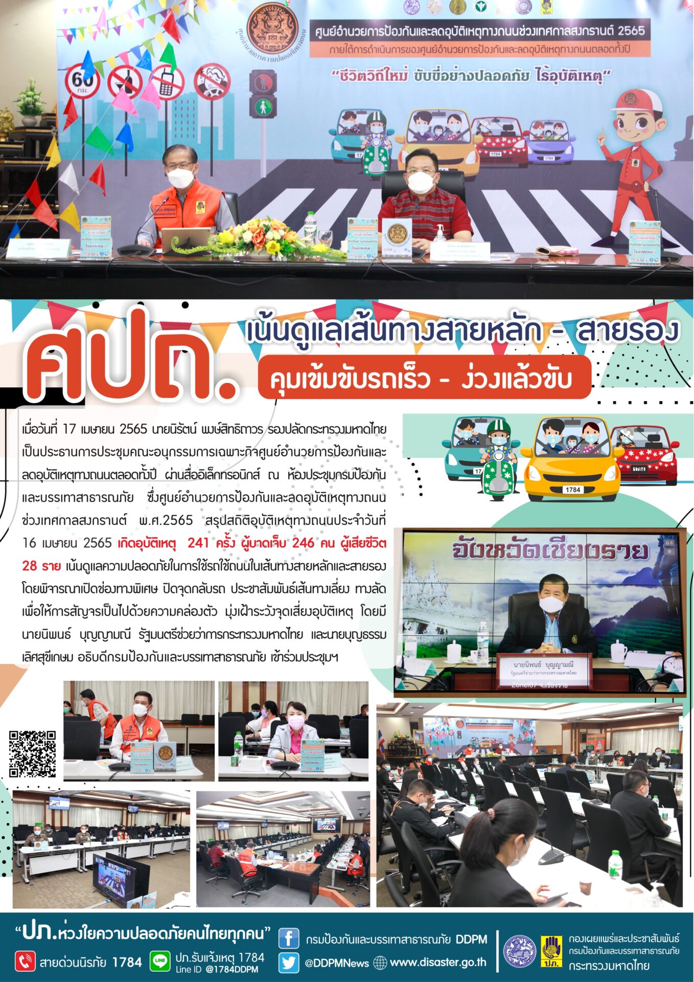 วันนี้ (17 เม.ย.65) ที่ศาลากลางจังหวัดเชียงราย นายนิพนธ์ บุญญามณี รัฐมนตรีช่วยว่าการกระทรวงมหาดไทย เป็นประธานการประชุมศูนย์ปฏิบัติการป้องกันและลดอุบัติเหตุทางถนนในช่วงเทศกาลสงกรานต์ พ.ศ. 2565 จังหวัดเชียงราย พร้อมนำส่วนราชการที่เกี่ยวข้องร่วมประชุมคณะกรรมการประจำศูนย์ปฏิบัติการป้องกันและลดอุบัติเหตุทางถนนในช่วงเทศกาลสงกรานต์ พ.ศ. 2565 ณ กรมป้องกันและบรรเทาสาธารณภัย กรุงเทพมหานคร ผ่านระบบประชุมทางไกล Video Conference