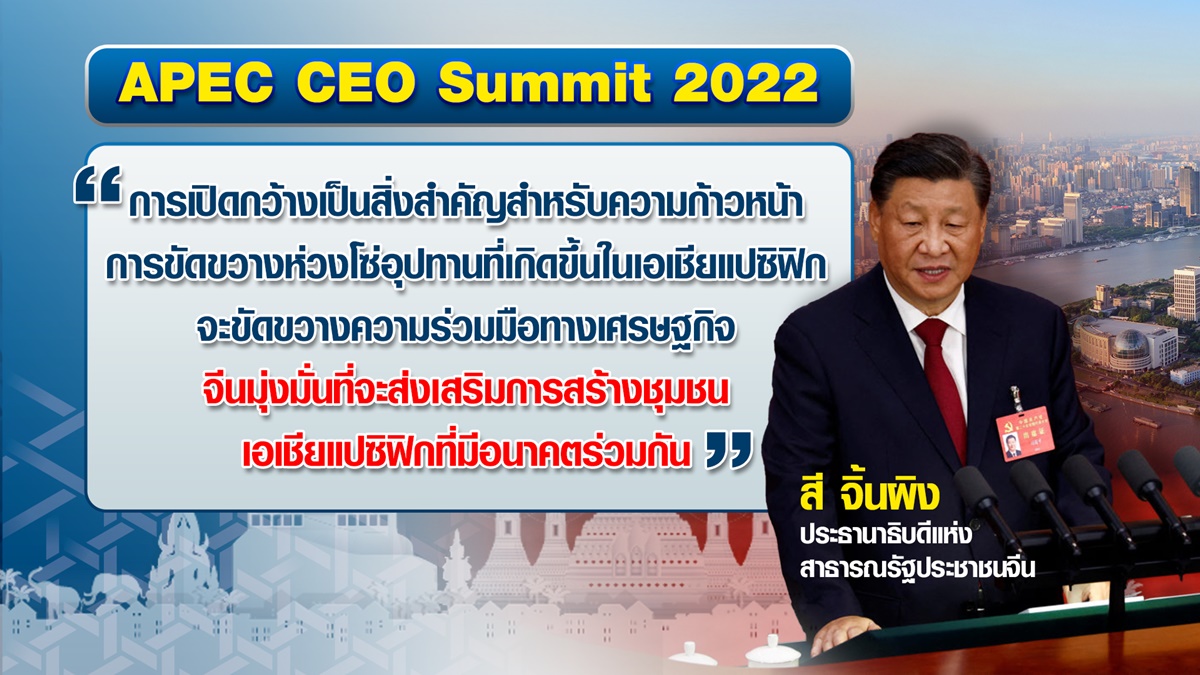 ศูนย์ฯ สิริกิติ์ 18 พ.ย. – เวทีประชุม APEC CEO Summit 2022 ปิดฉากลงแล้ว ซึ่งตลอดการประชุมมีการหารือกันหลากหลายประเด็น โดยมีผู้นำและผู้แทนจากทั้งหมด 7 เขตเศรษฐกิจเอเปค เข้าร่วมกล่าวปาฐกถาและเสวนา รวมถึงฝรั่งเศสและสหรัฐอเมริกา ส่วนจีน แม้ไม่ได้ขึ้นเวทีตามกำหนดการ แต่ก็เผยแพร่คำปราศรัยที่เตรียมมา. – สำนักข่าวไทย