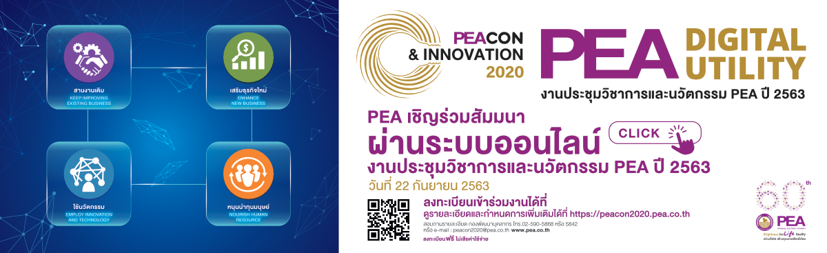 PEA ได้ร่วมกับสถาบันการศึกษาชั้นนำในประเทศและหน่วยงานวิจัยทั้งภาครัฐและเอกชน พร้อมเป็นกำลังสำคัญในการส่งเสริมการศึกษาและงานวิจัยด้านการพัฒนาธุรกิจพลังงานไฟฟ้า เพื่อสร้างนวัตกรรมที่เกี่ยวข้อง เป็นการยกระดับการไฟฟ้าให้ก้าวสู่การเป็นการไฟฟ้าแห่งอนาคต โดยได้ร่วมมือกันดำเนินการจัดงานประชุมวิชาการและนวัตกรรมของ กฟภ. ปี 2563 (PEACON & Innovation 2020) เพื่อเป็นเวทีสำคัญให้ นิสิต นักศึกษา อาจารย์ และนักวิชาการ รวมทั้งพนักงาน PEA ที่มีความรู้ความสามารถ ได้มีโอกาสนำเสนอบทความทางวิชาการ รวมทั้งยังเป็นเวทีแลกเปลี่ยนความรู้ เพื่อนำมาประยุกต์ใช้กับการพัฒนา ด้านธุรกิจพลังงานไฟฟ้าในอนาคตต่อไป