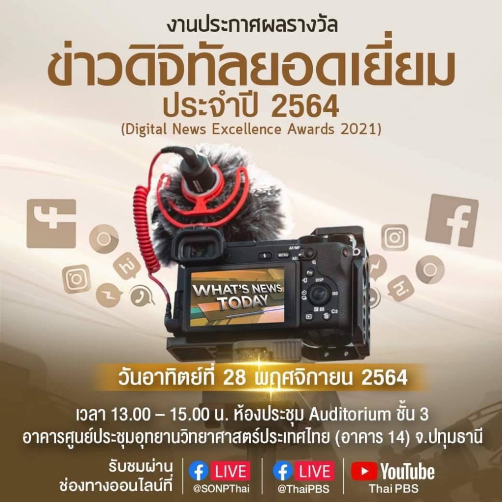 งานประกาศผล “รางวัลข่าวดิจิทัลยอดเยี่ยม ประจำปี 2564” (Digital News Excellence Awards 2021) 28 พฤศจิกายน 2564 ทั้งนี้ จำนวนผลงานประกวด “รางวัลข่าวดิจิทัลยอดเยี่ยม ประจำปี 2564” มีที่ผลงานส่งเข้าประกวดจำนวนทั้งสิ้น 110 ผลงาน โดยแบ่งออกเป็น 6 ประเภทข่าว ประกอบด้วย