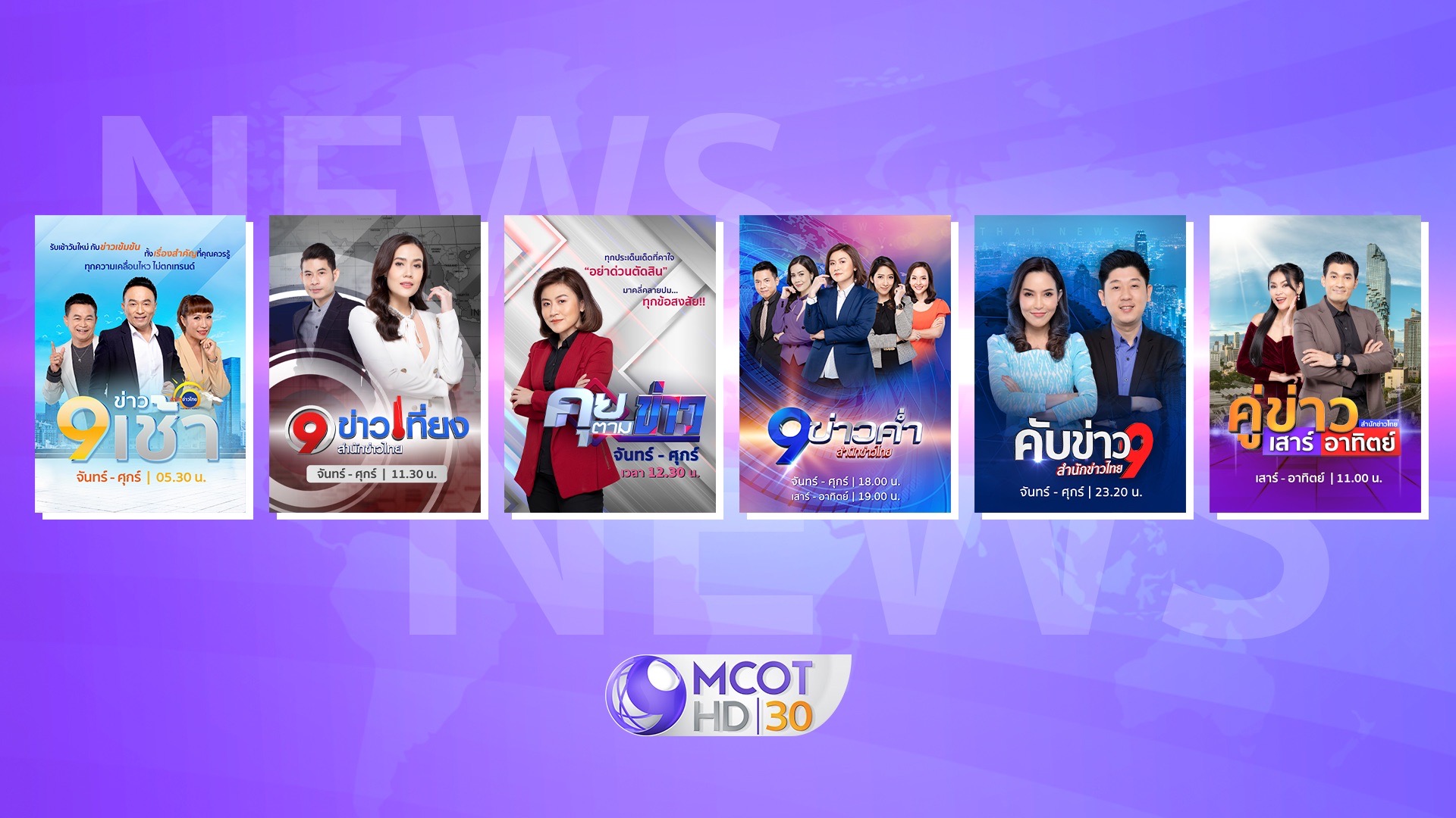 - หลังเคารพธงชาติ เต็มอิ่มจุใจไปกับรายการ 9 ข่าวค่ำ เจาะลึกรอบด้าน เล่าง่าย เข้าใจง่าย น่าเชื่อถือ กับเหล่าคนข่าวมืออาชีพ โดยมี นุ่น-ชุติมา พึ่งความสุข, ตั่ว-สุทิวัส หงส์พูนพิพัฒน์ และ จิ๊บ-วรรณศิริ ศิริวรรณ รับหน้าที่รายงาน