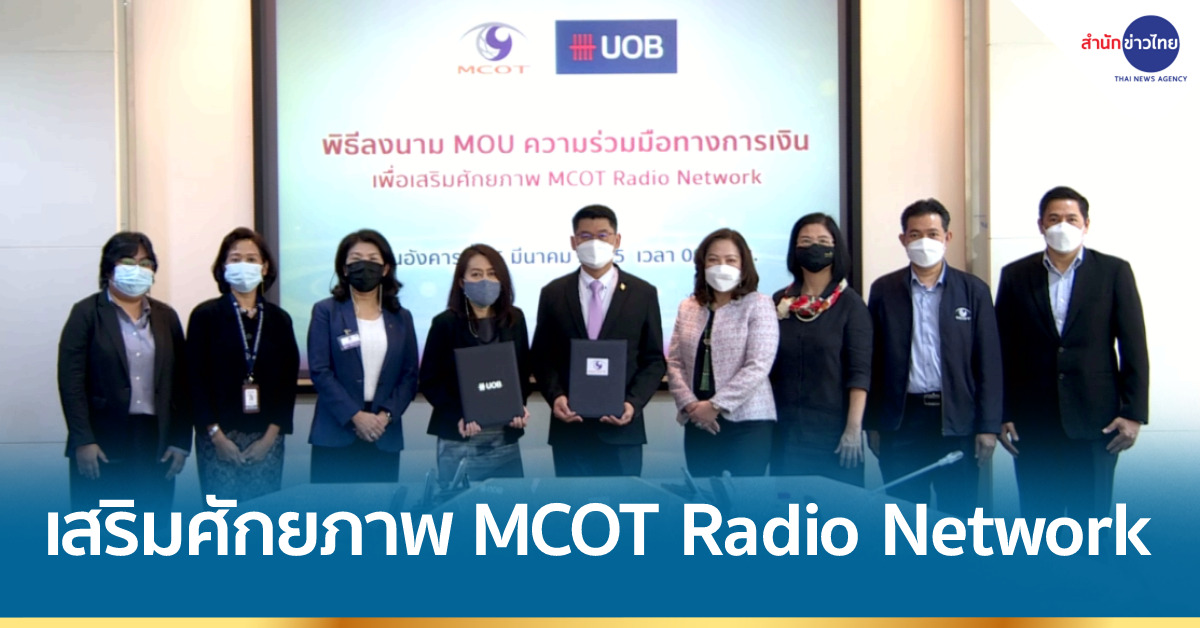 กรุงเทพฯ 15 มี.ค.- อสมท จับมือ ธนาคารยูโอบี ลงนาม MOU ความร่วมมือทางการเงินเพื่อเสริมศักยภาพ MCOT Radio Network โดยมีพันธกิจสำคัญในการใช้ศักยภาพที่เข้มแข็งของทั้ง 2 หน่วยงาน ขับเคลื่อนการดำเนินงานของ MCOT Radio Network ให้เติบโตอย่างแข็งแกร่ง