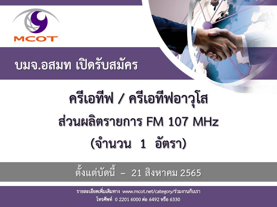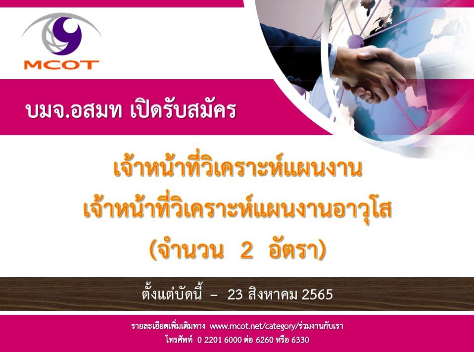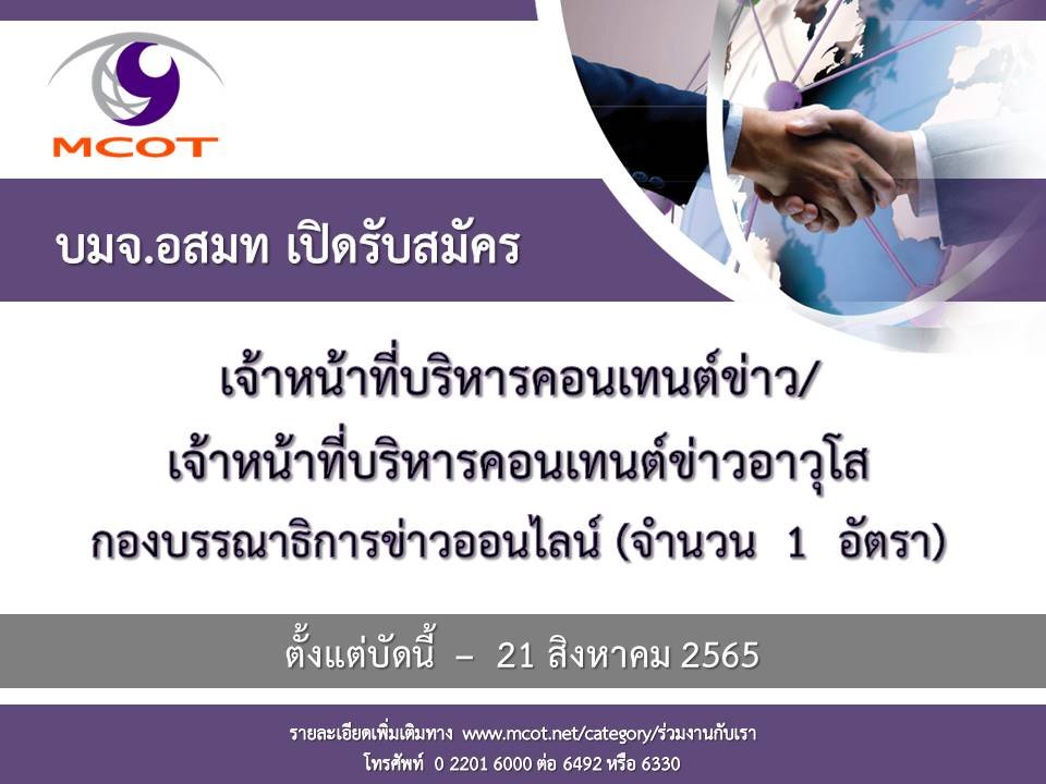 📮 ผู้สนใจเข้าดูรายละเอียดเพิ่มเติมและดาวน์โหลดใบสมัครได้ที่ www.mcot.net/category/ร่วมงานกับเรา
