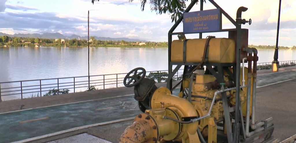 สถานการณ์น้ำในแม่น้ำโขง จ.นครพนม ยังคงต้องเฝ้าระวังหลังมีฝนตกต่อเนื่อง ทำให้ปริมาณน้ำโขงเพิ่มขึ้นวันละ 20-30 เซนติเมตร ล่าสุดระดับน้ำโขงอยู่ที่ประมาณ 8 เมตร ห่างจากจุดวิกฤติล้นตลิ่งเพียง 4 เมตร ส่งผลให้ลำน้ำสาขาสายหลัก ลำน้ำสงคราม ลำน้ำก่ำ เพิ่มขึ้นอยู่ที่ประมาณ 70% ของความจุ เทศบาลเมืองนครพนม เสริมเครื่องสูบน้ำขนาดใหญ่ 4 จุด จากปกติที่มีระบบสูบน้ำด้วยไฟฟ้าอัตโนมัติ 7 จุด เพื่อรองรับน้ำจากตัวเมือง รวมถึงพื้นที่เศรษฐกิจ เพื่อเร่งระบายน้ำลงแม่น้ำโขงหากมีฝนตกหนักติดต่อกันหลายชั่วโมง