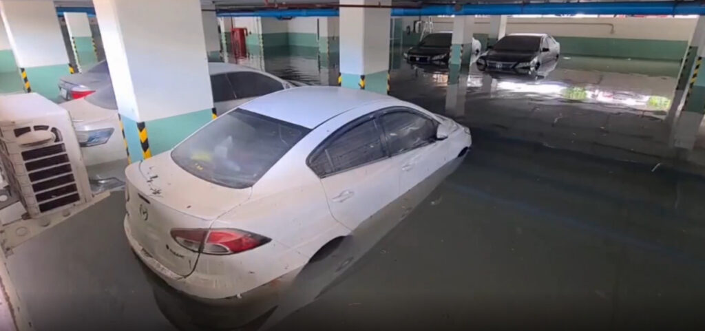 จากการสำรวจความเสียหาย ตามจุดต่างๆที่เกิดน้ำท่วมขังจากฝนที่ตกลงมาอย่างหนักติดต่อกันหลายชั่วโมง หนึ่งในนั้นคือลานจอดรถชั้นใต้ดินของคอนโด บนถนนชยางกูร ซึ่งต่ำกว่าถนนเกือบ 2 เมตร ทำให้รถผู้พักอาศัยเสียหายเกือบ 20 คัน เจ้าหน้าที่เทศบาลและสำนักงานป้องกันและบรรเทาสาธารณภัยจังหวัดนำเครื่องสูบน้ำมาช่วยสูบน้ำที่ยังตกค้างอยู่ชั้นใต้ดิน เพื่อให้เจ้าของรถและบริษัทประกันภัยเข้าสำรวจความเสียหาย ก่อนเคลื่อนย้ายไปส่งซ่อมต่อไป . – สำนักข่าวไทย