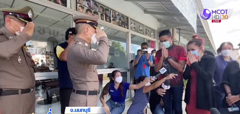 นนทบุรี 18 ส.ค. – ตำรวจนนทบุรีคุมตัวคนร้ายจี้ชิงทรัพย์ร้านเสริมสวยเมียนักร้องค่ายหม่ำ จ๊กมก ทำแผนประกอบคำรับสารภาพ