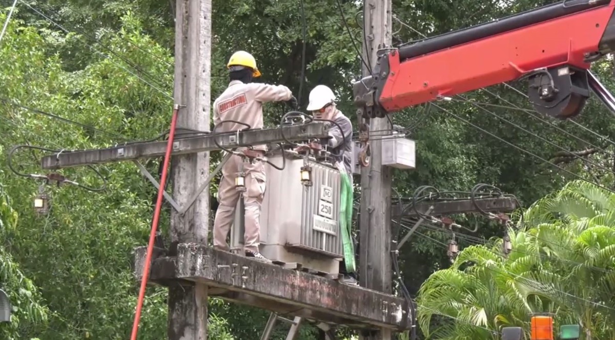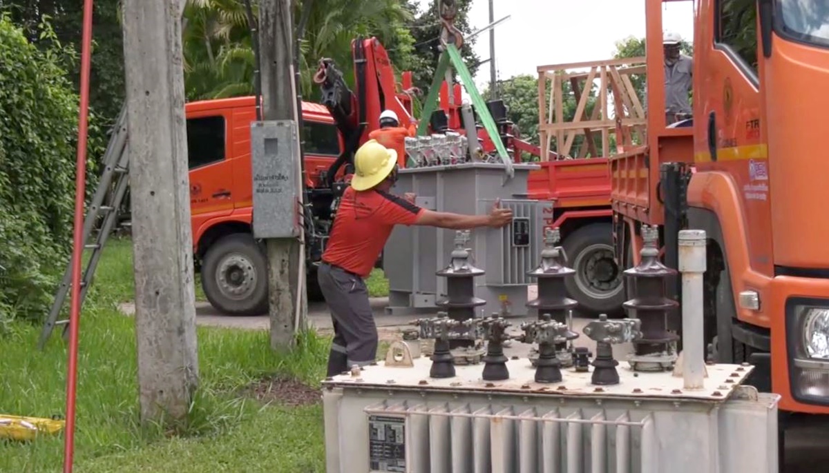 ด้านเจ้าหน้าที่การไฟฟ้าส่วนภูมิภาค นำหม้อแปลงใหม่มาติดตั้ง และสามารถจ่ายกระแสไฟฟ้าให้โรงเรียนใช้ได้ตามปกติ. – สำนักข่าวไทย