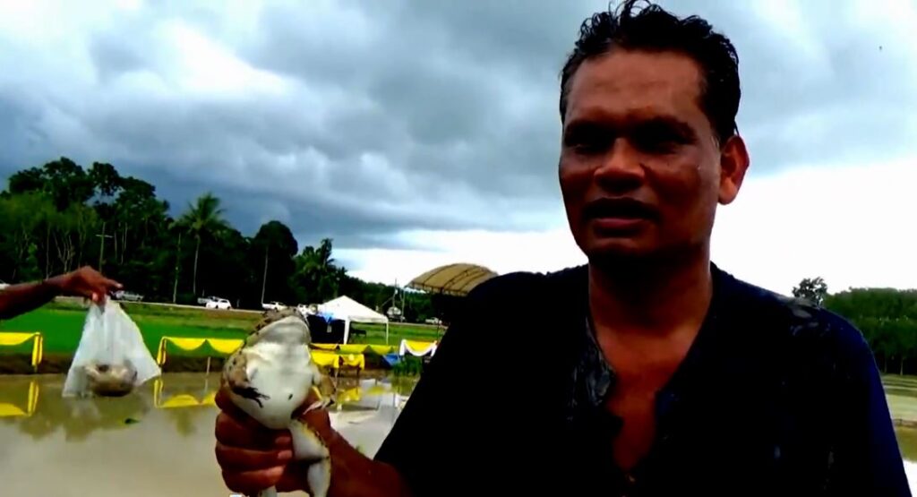 อย่างไรก็ตาม งานนี้มีแข่งวิ่งเปี้ยวแบกต้นกล้าข้าวเบายอดม่วง โดยมีนายสำเริง นิลลออ นายก อบต.นาพละ ลงแข่งด้วย แต่แพ้เพราะทำต้นกล้าตกหล่นในแปลงนา และยังแข่งจับปลาไหลและจับกบร่วมกับเด็กๆ ในหมู่บ้าน แต่ปรากฏว่าปลาไหลหนีหายไม่มีใครจับได้แม้แต่ตัวเดียว ส่วนการจับกบนายก อบต.จับได้มากสุด 5 ตัว แต่เมื่อไม่มีที่ใส่ นายก อบต.ก็จับยัดใส่เสื้อ ทำให้กบดิ้นอยู่ในเสื้อ นายก อบต.ก็ดิ้นตาม สุดท้ายต้องยอมเอากบออกจากเสื้อใส่ถุงทีละตัว ซึ่งเรียกว่างานนี้นายก อบต.โชว์เหนือจับกบได้มากกว่าเด็กๆ ทำให้ได้รับรางวัลพัดลม 1 ตัว แล้วไปล้างคราบโคลนกับเด็ก ๆ