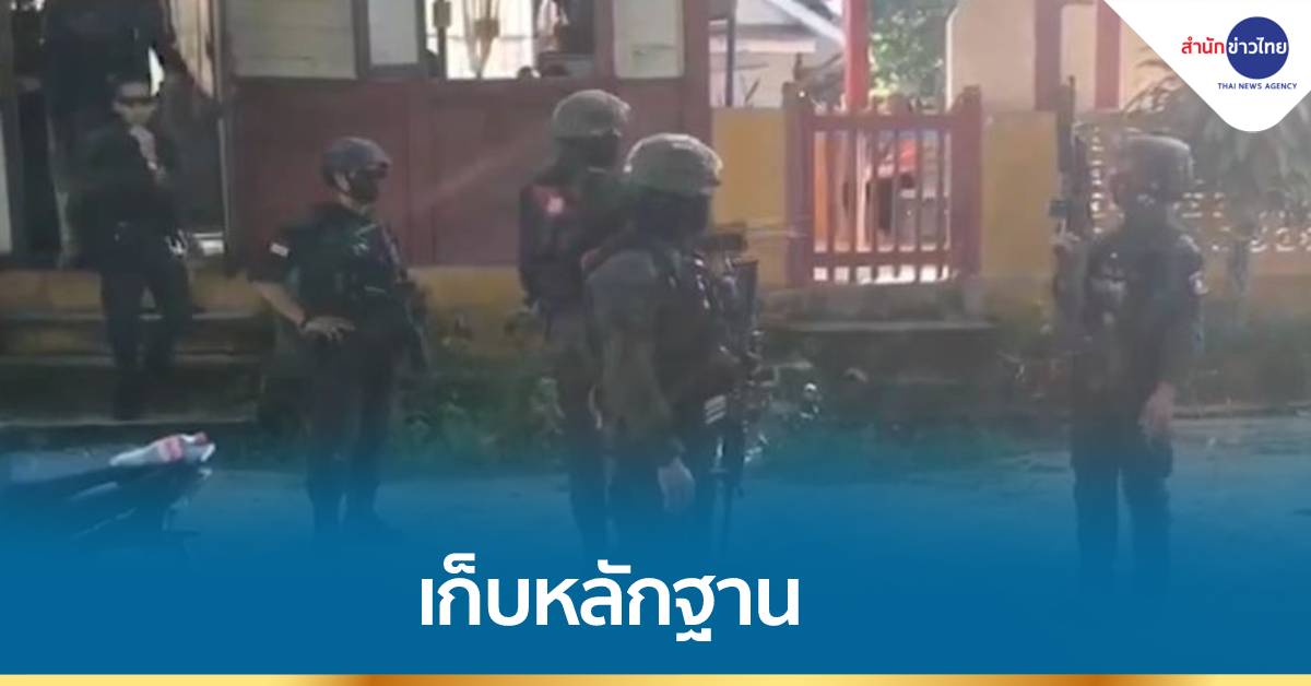 นราธิวาส 24 ส.ค. – เจ้าหน้าที่เข้าตรวจสอบเหตุคนร้ายบุกโจมตีฐานปฏิบัติการหมวดเฉพาะกิจ นปพ.ที่ 31 ชุดคุ้มครองสถานีรถไฟเจาะไอร้อง ได้รับบาดเจ็บ 1 นาย