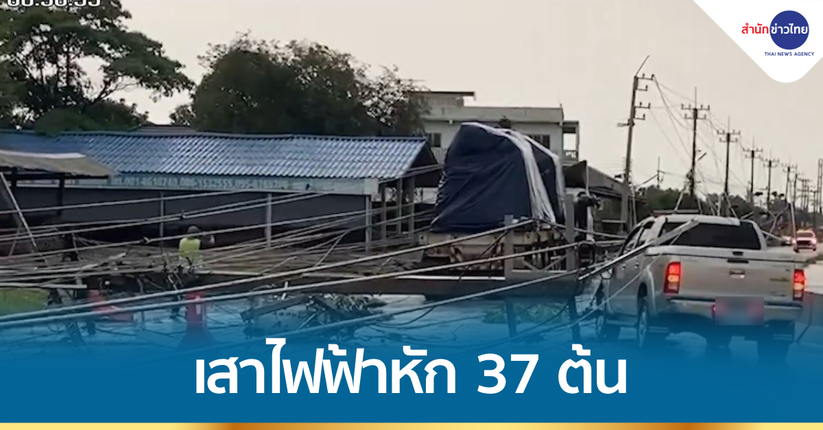ฉะเชิงเทรา 25 ส.ค. – ฝนถล่ม จ.ฉะเชิงเทรา เสาไฟฟ้าแรงสูงบนถนน 304 อ.บางคล้า ล้ม 37 ต้น ยาวกว่า 1 กิโลเมตร และยังล้มทับรถกระบะแลรถหัวลาก ได้รับความเสียหาย