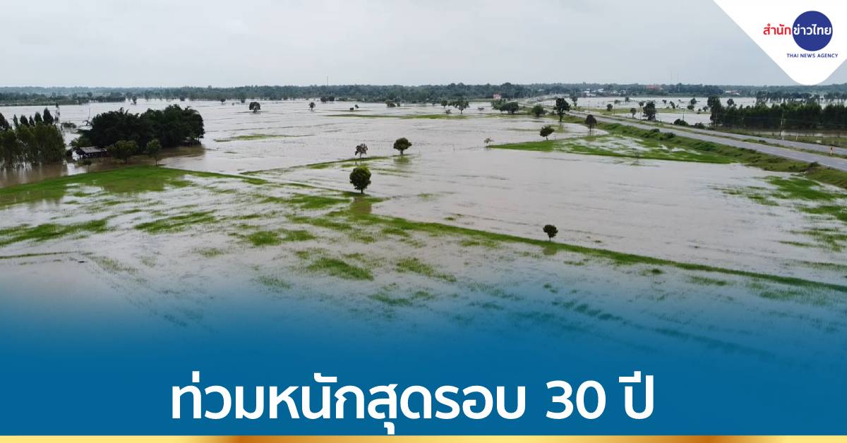 มวลน้ำมหาศาลไหลหลากมาตามลำคลองธรรมชาติ “ลำแอก” ล้นทะลักเข้าท่วมพื้นที่นาข้าวของเกษตรกร ต.ตลาดไทร อ.ประทาย จ.นครราชสีมา ได้รับความเสียหายเป็นบริเวณกว้างมากกว่า 2,000 ไร่ ระดับน้ำลึก 1-2 เมตร ข้าวนาปีที่อยู่ในระยะกำลังเจริญเติบโต ถูกน้ำท่วมมิด ต้นข้าวจมอยู่ใต้บาดาล มวลน้ำยังทะลักท่วมผิวจราจรบริเวณจุดกลับรถใต้สะพาน ถนนสายประทาย-บ้านใหม่ไชยพจน์ ระดับน้ำลึก 1 เมตร รถทุกชนิดไม่สามารถวิ่งผ่านได้ เจ้าหน้าที่ตำรวจต้องนำแผงเหล็กมาวางปิดกั้น แจ้งเตือนไม่ให้รถผ่าน ป้องกันเกิดอุบัติเหตุรถจมน้ำ ด้านเกษตรกรลงพื้นที่สำรวจนาข้าวบอกว่าเป็นน้ำท่วมหนักครั้งแรกในรอบ 30 ปี ขณะปริมาณน้ำยังคงเพิ่มสูงขึ้นและขยายวงกว้าง ทำให้ชาวนาหลายรายเดือดร้อนหนัก ข้าวนาปีที่กำลังเติบโตเพิ่งลงมือหว่านปุ๋ย ต้นทุนกระสอบละพันกว่าบาทแต่มาถูกน้ำท่วมจนมิดยอดข้าว จึงอยากวอนให้ภาครัฐหาแนวทางเร่งระบายน้ำเป็นการด่วน