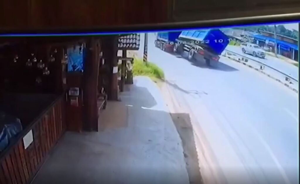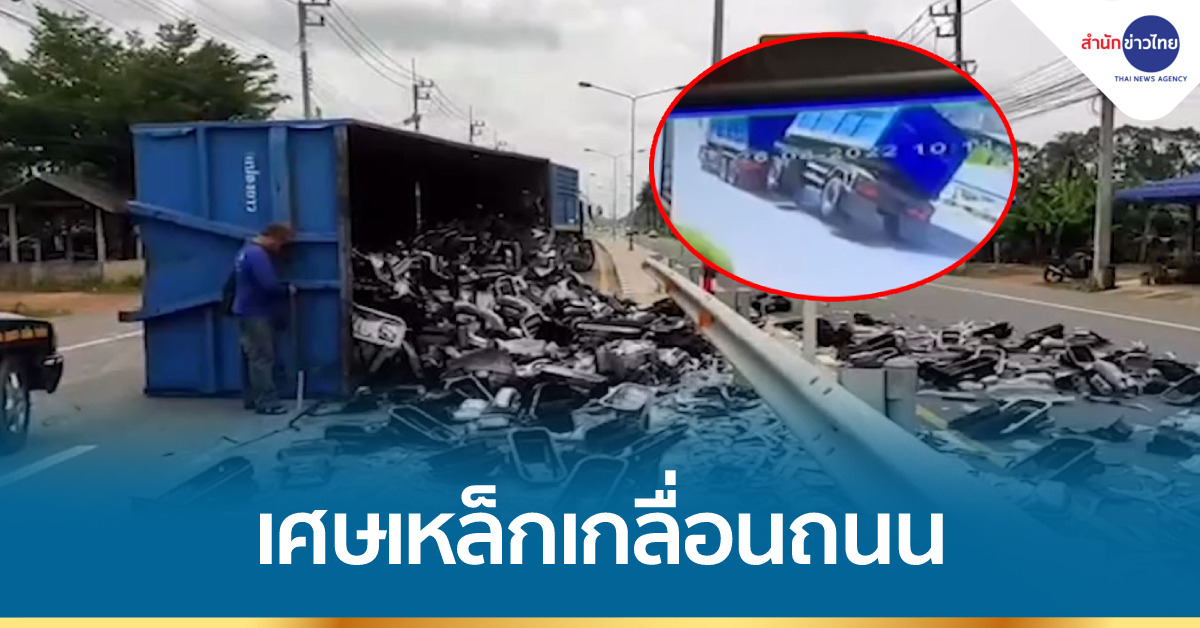 ฉะเชิงเทรา 26 ส.ค. – วงจรปิดจับภาพรถพ่วง 18 ล้อ หลุดโค้ง เศษเหล็กเกือบ 20 ตัน ตกกระจายเกลื่อนถนน ช่วงโค้งหักศอกบ้านวังเย็น อ.แปลงยาว จ.ฉะเชิงเทรา