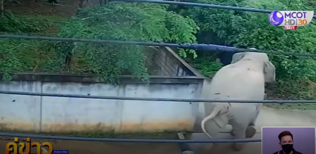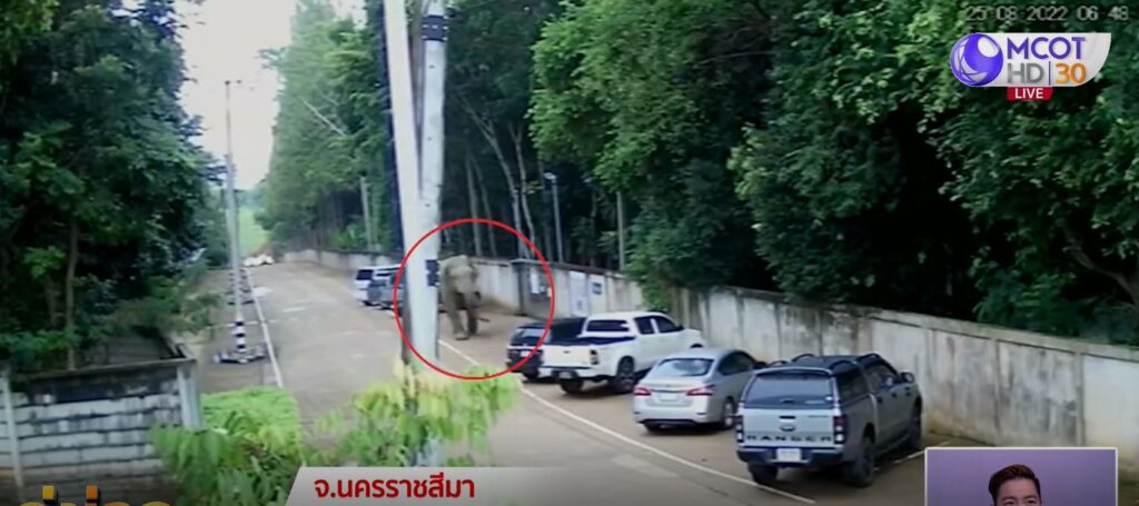 กล้องวงจรปิดจับภาพนาทีช้างป่าจากอุทยานแห่งชาติเขาใหญ่ 1 ตัว ชื่อว่า “เจ้าอ้อน” อายุประมาณ 25 ปี เดินบนถนนกลางหมู่บ้านคลองปลากั้ง หมู่ 16 ต.วังหมี อ.วังน้ำเขียว จ.นครราชสีมา