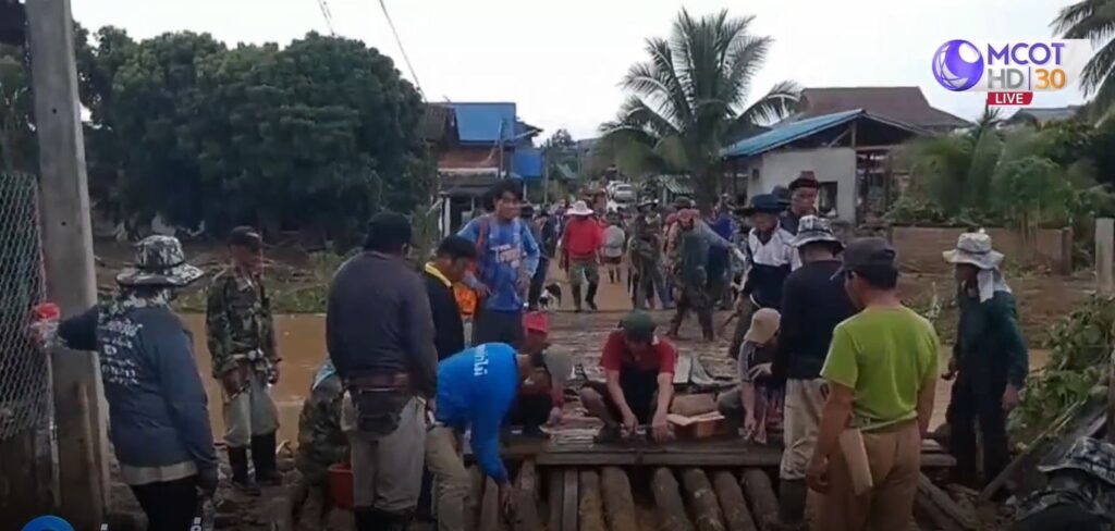 ส่วนที่บ้านแม่ตาใน หมู่ 6 อ.แจ้ห่ม จ.ลำปาง ที่สะพานขาด สัญจรไม่ได้ ล่าสุดหน่วยกู้ภัยและฝ่ายปกครองในพื้นที่ นำไม้ซุงท่อนพาดแทนสะพานให้ชาวบ้านเดินข้ามได้เป็นการชั่วคราว ซึ่งไม้ท่อนซุงนี้สามารถรับน้ำหนักของรถได้