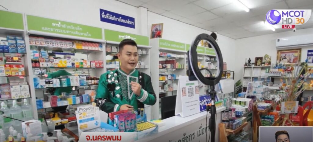 นครพนม 28 ส.ค. – ฮือฮาโลกโซเชียล! เภสัชกรหนุ่มผุดไอเดียการตลาดรูปแบบใหม่ ด้วยการสวมชุดนักร้องทุ่งหมอลำ ร้องเพลงลูกทุ่งหมอลำ ไลฟ์แนะนำบริการ รวมถึงให้คำปรึกษาลูกค้า เกี่ยวกับยารักษาโรคและอาหารเสริม