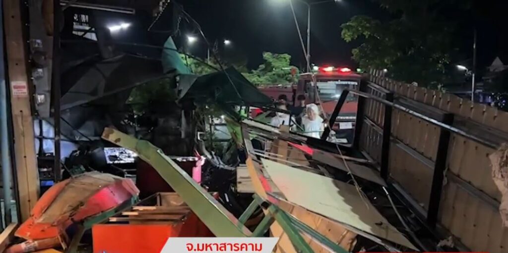 มหาสารคาม 29 ส.ค.- อุบัติเหตุเมื่อกลางดึกที่ผ่านมา ที่ จ.มหาสารคาม มีรถเก๋งคันหนึ่ง ไม่ทราบว่าคนขับเมาหรือไม่ พุ่งชนเข้าไปในร้านอาหารพังยับ 2 ร้าน เจ้าของร้านตื่นตกใจ หนึ่งในนั้นยอมรับเสียใจมาก เพิ่งเปิดร้านได้อาทิตย์เดียว