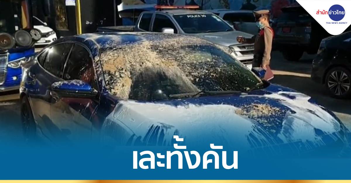 เพชรบุรี 29 ส.ค.- สาวชงเหล้าโดนมือมืดสาดสีทาบ้านใส่เก๋งหรู ปล่อยลมยางจนบี้แบนทั้ง 4 ล้อ สภาพเละทั้งคัน เจ้าตัวยังงง ไม่รู้ว่าไปทำอะไรให้ใครโกรธ