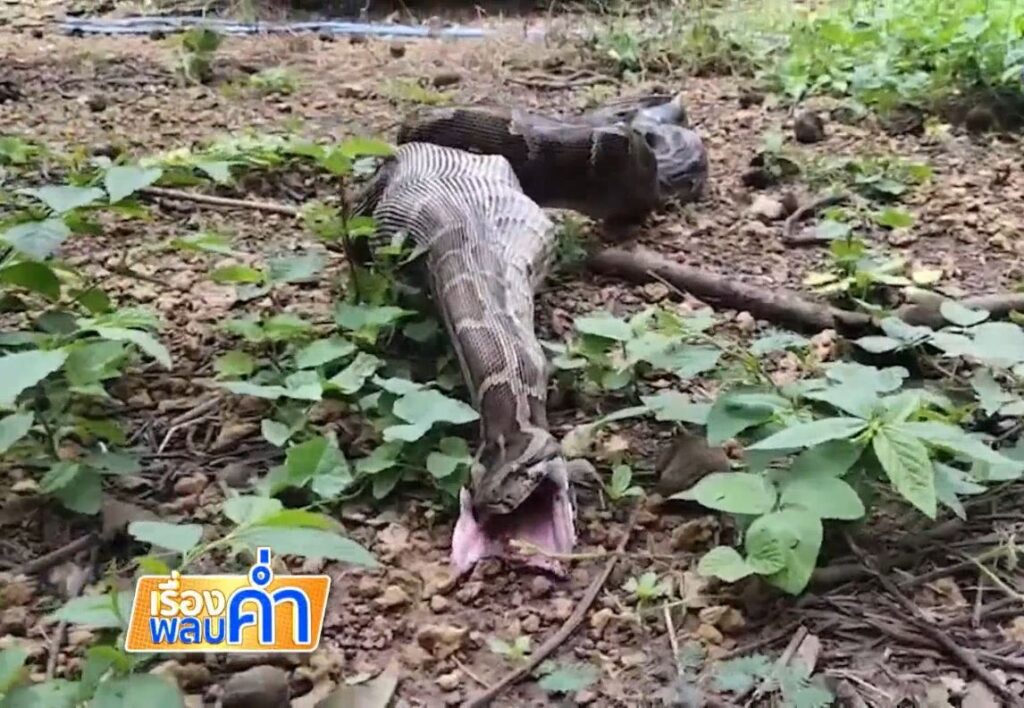 นายวุฒิชงค์ เพียสุระ อายุ 29 ปี เจ้าของบ้าน พาเจ้าหน้าที่ไปในเล้าหลังบ้าน พบงูเหลือมตัวใหญ่นอนนิ่ง เนื่องจากได้กินไก่เข้าไปจนขยับตัวไม่ไหว ทางทีมอาสาพิทักษ์งูฯ จึงลากตัวงูออกมาพื้นที่โล่งหน้าบ้าน เพื่อให้งูขย้อนไก่ที่กลืนเข้าไปออกมา กว่าจะขย้อนไก่ออกมาได้ ใช้เวลาพอสมควร เพราะพ่อพันธุ์ไปไก่ที่งูเขมือบไปตัวใหญ่พอสมควร