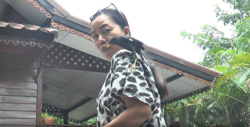 ลูกนกเอี้ยงกำพร้าที่คุณป้อม หรือคุณนันท์นภัทร แลนเดอร์ เลี้ยงไว้ที่บ้านสวนไผ่ดงบัง หมู่ 4 ต.ดงบัง อ.ประจันตคาม จ.ปราจีนบุรี ได้มาจากเพื่อนที่พบว่าตกอยู่โคนเสาไฟฟ้าเพราะลมฝน มีแม่นกไปคาบแมสก์ที่ถูกทิ้งข้างถนนมาห่มให้ลูก จนเกิดความสงสาร นำมาเลี้ยงจนแข็งแรง แต่ด้วยความจำเป็นเพราะต้องปรับปรุงซ่อมแซมบ้านพัก จึงขอให้คุณป้อม นำไปเลี้ยง แล้วปล่อยคืนสู่ธรรมชาติ จึงตกกระไดพลอยโจนนำมาเลี้ยง แต่เลี้ยงไปเลี้ยงมาเจ้าเอี้ยงตัวนี้กลับไม่ยอมไปไหน เกาะติดทุกครั้งที่ขยับตัวจนเกิดความผูกพัน แม้จะพยายามให้ได้เล่นกับนกเอี้ยงป่าที่บินอยู่รอบๆ บ้านก็ตาม คุณป้อมบอกว่าเลี้ยงแบบเปิด ไม่ได้ขังแต่อย่างใด ปล่อยเป็นอิสระ