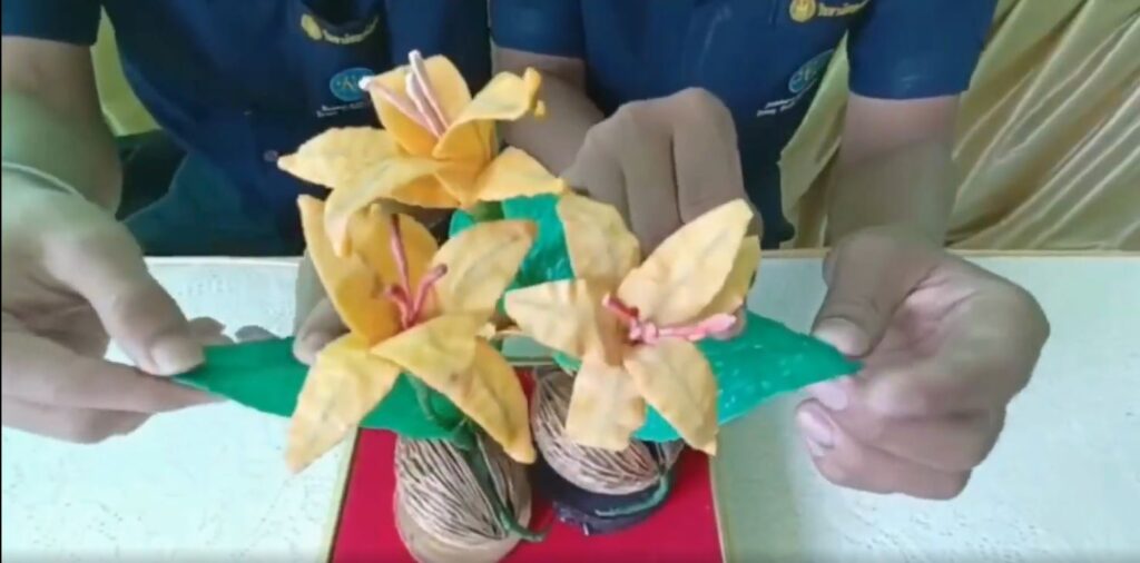 ตรัง 1 ก.ย.- นักศึกษาวิทยาลัยเทคนิคตรัง ประดิษฐ์ดอกไม้ของที่ระลึก “บุหงาพารา” จากน้ำยางแปรรูป เป็นดอกไม้ช่อสวยแปลกตา และคงทนกว่าวัสดุอื่น
