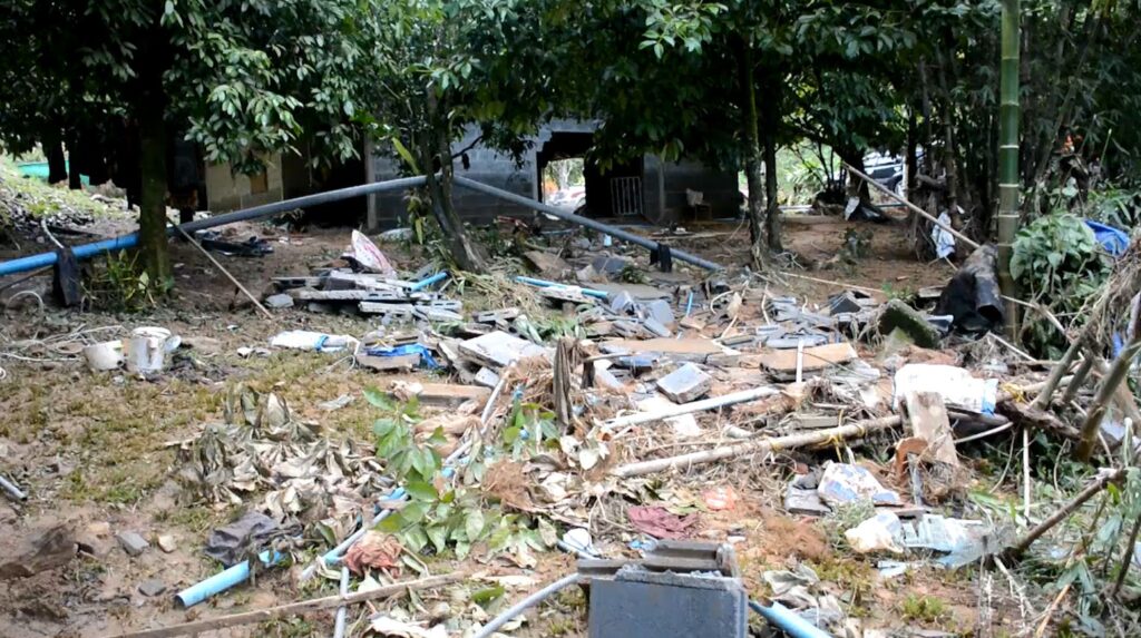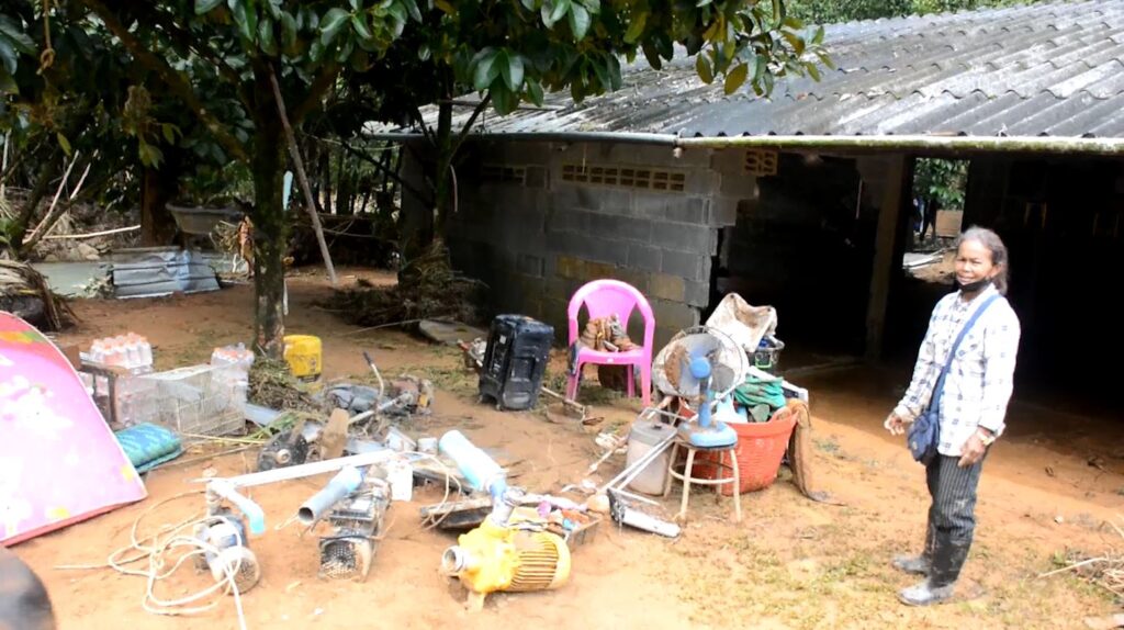 ต่อมามวลน้ำได้หลากเข้าทางหน้าบ้าน ดันประตูทะลักเข้าห้องนอนจนซัดกำแพงห้องพังถล่มลงมาทั้งแถบ และยังพัดพาเอาเตียงนอนเหล็กพร้อมที่นอน และเงินสด ลอยหายไปกับกระแสน้ำ โดยเงินที่กู้มานั้นเตรียมไว้สำรองเป็นค่าใช้จ่ายในการลงทุนทำสวน และตั้งใจจะนำเงินดังกล่าวไปฝากธนาคารในเช้าวันที่ 31 ส.ค.65 แต่เกิดเหตุการณ์น้ำป่าไหลหลากก่อน