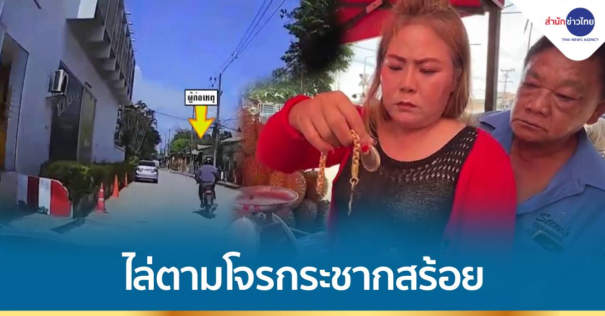 กล้องหน้ารถของพลเมืองดีจับภาพหลังคนร้ายก่อเหตุกระชากสร้อยคอทองคำหนัก 10 บาท จากแม่ค้าขายทุเรียน แล้วขี่รถจักรยานยนต์สีแดงสภาพเก่า หลบหนีอย่างรวดเร็ว พลเมืองดีเห็นเหตุการณ์พยายามขับรถไล่ตามแล้ว แต่ไม่ทัน