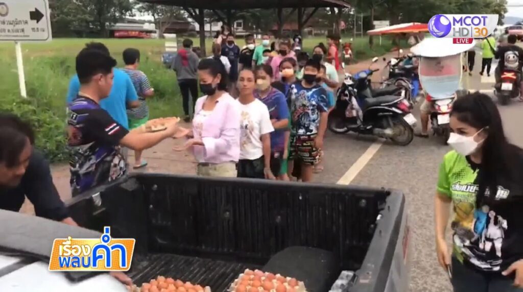 นายวิภาค ทองแก้ว อายุ 36 ปี พร้อมครอบครัวนำรถกระบะขนไข่ต้ม 10,000 ฟอง มาจอดเปิดท้าย แจกให้กับชาวบ้านที่สัญจรผ่านไปมา บริเวณริมถนนตรงข้ามโรงเรียนบ้านมะขาม (สาครมะขามราษฎร์) ตำบลมะขาม อำเภอมะขาม จังหวัดจันทบุรี แบ่งนับจำนวนไข่ต้ม ใส่รังไข่ไว้รังละ 15 ฟอง ต่อชาวบ้าน 1 คน 1 ครอบครัว หลังเริ่มแจกไม่นาน มีประชาชนทั้งที่ขี่รถผ่าน และเดินมาทยอยเข้าคิวรับไข่ต้มต่อเนื่อง โดยใช้เวลาไม่นาน 50 นาที ไข่ต้ม 10,000 ฟอง ก็แจกหมด