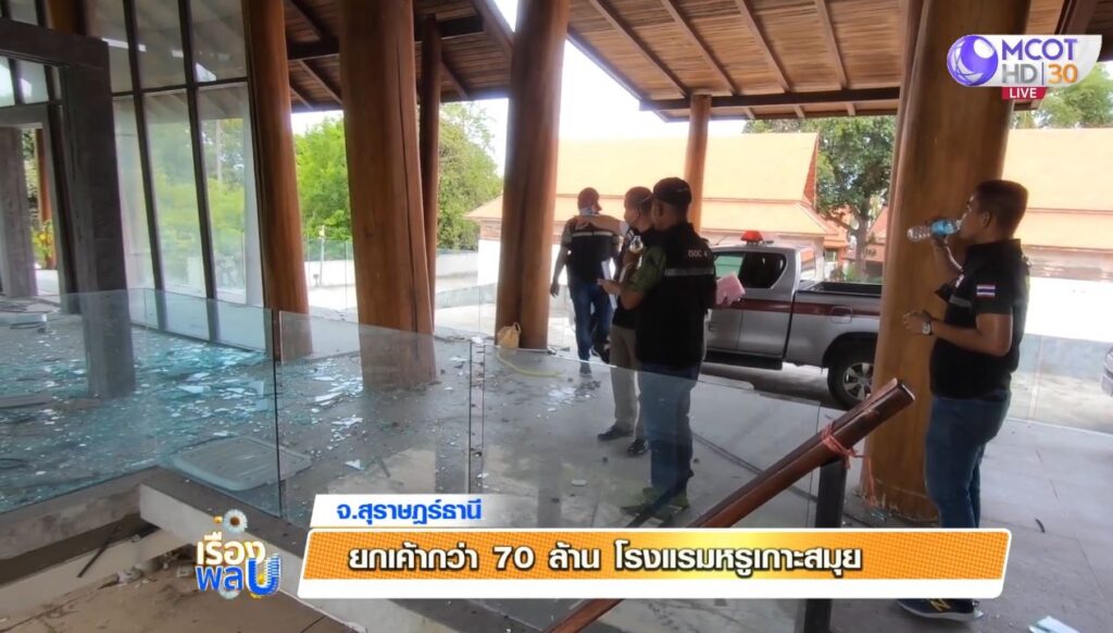 สุราษฏร์ธานี 5 ก.ย. – เจ้าของโรงแรมหรูเกาะสมุยเซ็ง ให้ช่างมาซ่อมบำรุงโรงแรม หลังประสบปัญหา ไม่มีนักท่องเที่ยวช่วงโควิด สุดท้ายถูกขโมยทรัพย์สินเกลี้ยงโรงแรม มูลค่าความเสียหายกว่า 70 ล้านบาท