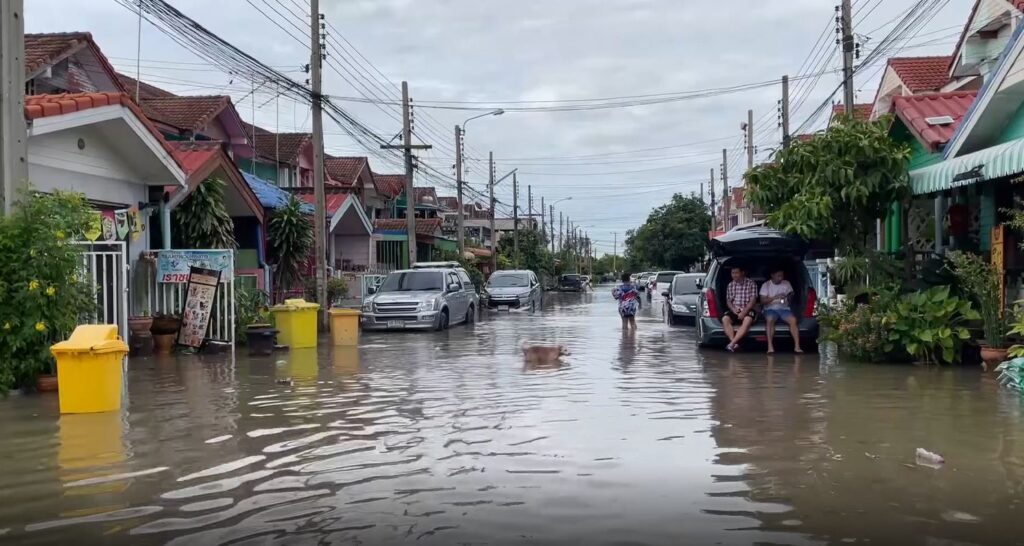สมุทรปราการ 10 ก.ย. – น้ำยังท่วมขังหลายหมู่บ้านใน อ.บางบ่อ จ.สมุทรปราการ เนื่องจากระดับน้ำในคลองสูง เป็นอุปสรรคต่อการสูบน้ำออกจากพื้นที่