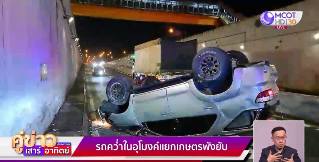 รถคว่ำในอุโมงค์แยกเกษตรพังยับ