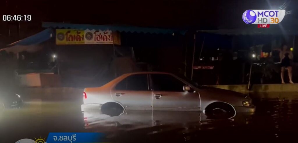 เมื่อเวลา 01.00 น. ที่ผ่านมา ในพื้นที่ อ.บางละมุง มีฝนตกลงมาอย่างหนัก ติดต่อกันนานกว่า 2 ชั่วโมง ส่งผลให้เกิดท่วมขังหลายจุดในพื้นที่ โดยเฉพาะบริเวณบนถนนสุขุมวิท พัทยาใต้ ถนนสายเลียบหาดพัทยา ถนนสุขุมวิทพัทยาใต้ ถนนสายสามบริเวณแยกมุมอร่อย รวมถึงถนนเส้นเลียบทางรถไฟ ช่วงซอยเขาตาโล ส่งผลให้ปริมาณน้ำท่วมสูงตั้งแต่ 30 เซนติเมตร ถึงกว่า 1 เมตร ในบางจุด