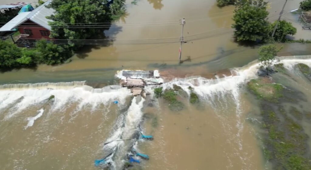 อ.ชนบท จ.ขอนแก่น น้ำยังท่วมสูงและกัดเซาะถนนพัง