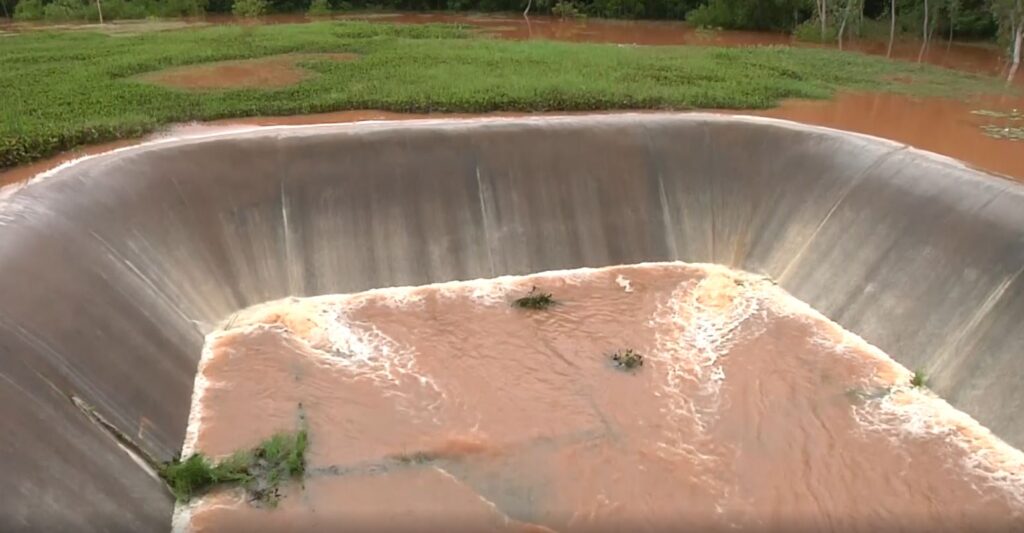 จังหวัดนครราชสีมา อ่างเก็บน้ำห้วยบง ต.ประสุข อ.ชุมพวง มีปริมาณน้ำ 15 ล้านลูกบาศก์เมตร เกินความจุ 102% จนมีมวลน้ำสีแดงขุ่น เป็นมวลน้ำใหม่จากฝนตกหนักชะล้างตะกอนดินโคลนไหลทะลักผ่านประตูระบายน้ำลงไปตามคลองชลประทานด้านท้าย กองอำนวยการป้องกันและบรรเทาสาธารณภัยจังหวัดนครราชสีมาประกาศแจ้งเตือนประชาชนที่อยู่ริม 2 ฝั่งคลองชลประทานท้ายอ่าง เฝ้าระวังสถานการณ์น้ำท่วมฉับพลัน น้ำล้นตลิ่ง และผลกระทบต่อพื้นที่การเกษตรกว่า 7,000 ไร่ อาจถูกน้ำท่วมขังได้รับความเสียหาย