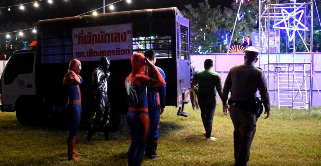 อุตรดิตถ์ 15 ก.ย. – ชาวอุตรดิตถ์ฮือฮา เหล่าซูเปอร์ฮีโรช่วยดูแลความปลอดภัย ป้องปรามกลุ่มวัยรุ่นยกพวกตีกัน ในเทศกาลลางสาด ลองกองหวาน ลานหน้าอนุสาวรีย์พระยาพิชัยดาบหัก