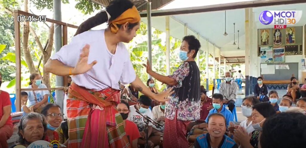 พิธีกรรมความเชื่อของชุมชนแห่งนี้ เชื่อว่าการเล่นมะม็วดเป็นการรักษาอาการเจ็บป่วยของคนด้วยเสียงเพลง โดยมีแม่หมอหรือแม่มดเข้าทรงเพื่ออัญเชิญเทพธิดาสิ่งศักดิ์ เสี่ยงทายดูอาการเจ็บป่วยเหล่านั้น ร่วมทั้งการเล่นมะม็วดยังสามารถขจัดปัดเป่าทุกข์โศก โรคร้าย และเพื่ออัญเชิญเจ้าที่เจ้าทางในหมู่บ้านปกปักรักษาลูกหลานในชุมชนให้แคล้วคลาดปลอดจากโรคภัยไข้เจ็บต่างๆ