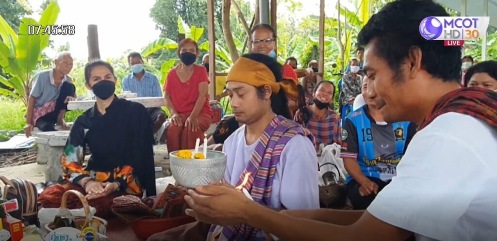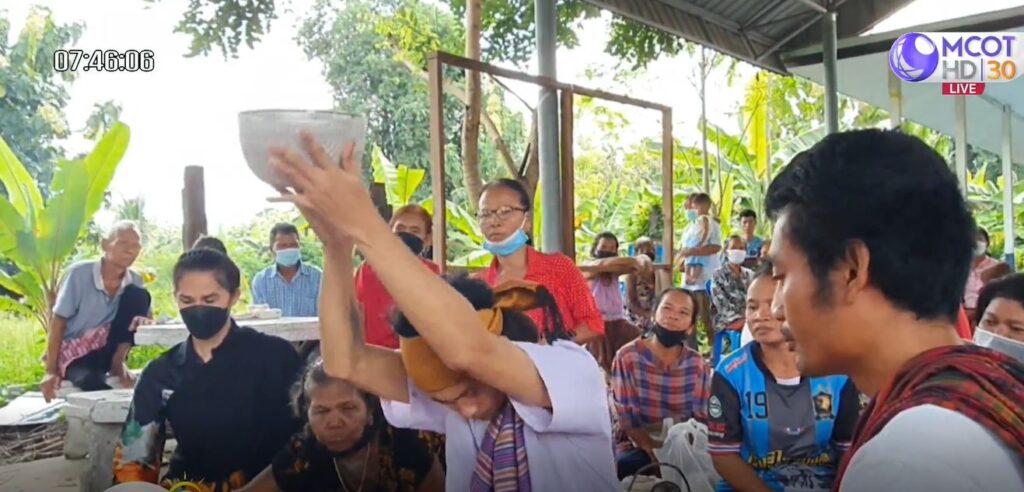 สุรินทร์ 16 ก.ย. – ชาวบ้าน อ.เมือง จ.สุรินทร์ กว่า 50 คน ร่วมพิธีเข้าทรง มะม็วด หรือรำผีฟ้า ของชาวเขมรพื้นบ้าน ซึ่งสืบทอดมาตั้งแต่โบราณ