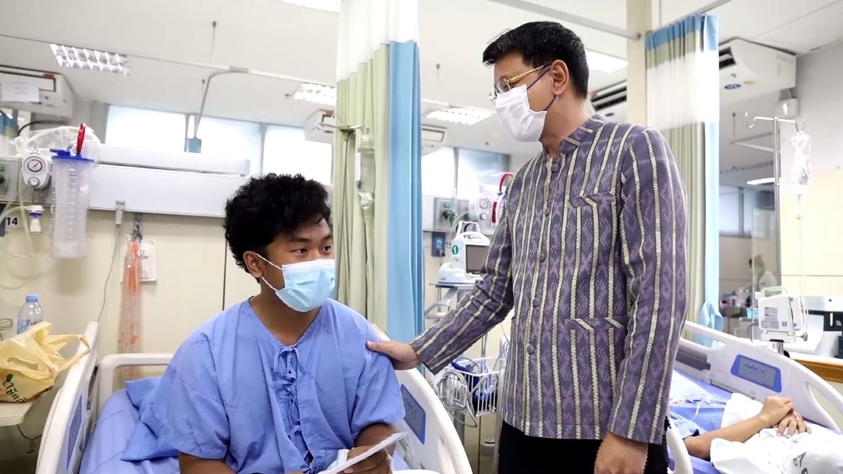 เมื่อช่วงเช้าวันนี้ (17 ก.ย.) นายสยาม ศิริมงคล ผู้ว่าราชการจังหวัดอุดรธานี เดินทางไปเยี่ยมนักเรียนที่บาดเจ็บจากเหตุถูกไฟดูด ซึ่งแพทย์ยังให้นอนดูอาการที่หอผู้ป่วยอุบัติเหตุและฉุกเฉิน 3 คน ประกอบด้วย นักเรียนชายชั้น ม.1 อายุ 12 ปี ที่ถูกไฟดูดนอนแช่น้ำตามคลิปที่ปรากฏ นักเรียนหญิงชั้น ม.3 อายุ 15 ปี และนายอรรถชัย อาจอุดม อายุ 19 ปี หรือ “บาส” นักศึกษาชั้น ปวส.2 วิทยาลัยเทคนิคอุดรธานี ฮีโร่ที่เข้าไปช่วยเหลือและถูกไฟดูดด้วย โดยผู้ว่าฯ อุดรธานี ได้สอบถามอาการของทุกคน ซึ่งได้รับคำยืนยันว่าปลอดภัยดีทั้งหมด พร้อมสอบถามนายอรรถชัย ฮีโร่ที่เข้าไปช่วยนักเรียนถูกไฟดูด ซึ่งผู้ว่าฯ ได้กล่าวขอบใจและชื่นชมในความมีน้ำใจ พร้อมมอบเงินส่วนตัวเป็นรางวัลในความมีน้ำใจกล้าหาญ เพื่อให้ไปซื้อโทรศัพท์มือถือใหม่แทนเครื่องเก่าที่ตกน้ำ