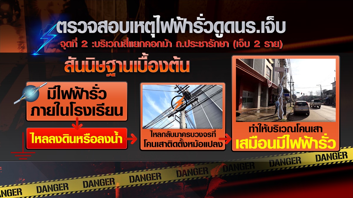 ทีมข่าวสำนักข่าวไทย ลงพื้นที่สำรวจจุดเกิดเหตุไฟฟ้ารั่วและดูดนักเรียน ทั้ง 2 จุด ในเขตเทศบาลนครอุดรธานี หลังเกิดฝนตกหนักและน้ำท่วม เมื่อช่วงเย็นวานนี้ (16 ก.ย.) วันนี้น้ำลดเป็นปกติแล้ว โดยหลังเกิดเหตุ การไฟฟ้าส่วนภูมิภาคได้เข้าดำเนินการแก้ไขทั้ง 2 จุดแล้ว