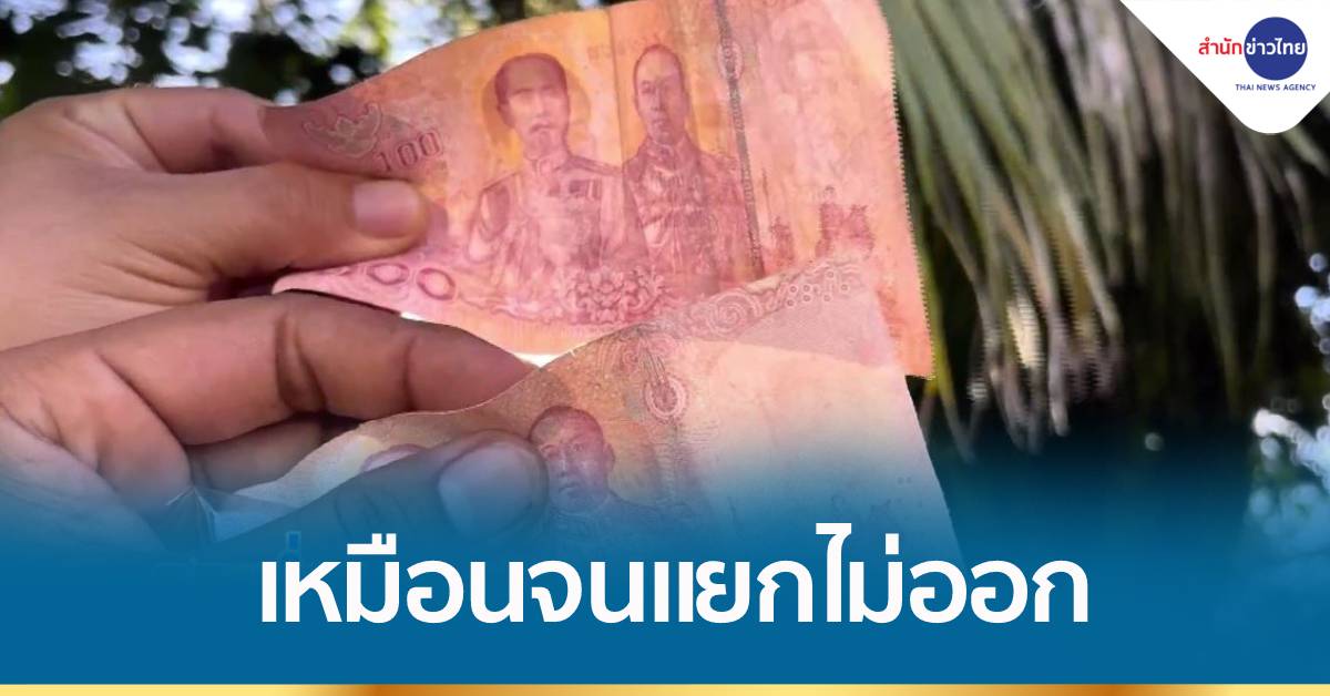 นายพินิกรณ์ เล่าว่า วิ่งส่งอาหารประจำทุกวัน จนเมื่อวันที่ 15 ก.ย.ที่ผ่านมา จะนำเงินไปฝากที่ตู้รับฝากเงินแต่ปรากฏว่ามีธนบัตรฉบับละ 100 บาท 1 ใบ ที่ตู้รับฝากเงินไม่ยอมรับ ตนก็พยายามฝากเข้าไปหลายรอบ แต่ตู้ก็ไม่รับ จึงนำไปส่องไฟดู พบว่าไม่มีลายน้ำพระบรมฉายาลักษณ์ ถึงได้รู้ว่าเป็นของปลอมแน่นอน แต่ไม่แน่ใจว่ารับแบงก์นั้นมาจากลูกค้าคนไหน วิ่งส่งของทั้งวันได้เงินมา 800 บาท จึงอยากฝากเตือนภัยให้คนอื่นๆ ระวังแบงก์ร้อยปลอมระบาดในพื้นที่ ขอให้ตรวจดูให้ดีก่อนรับเงิน. – สำนักข่าวไทย