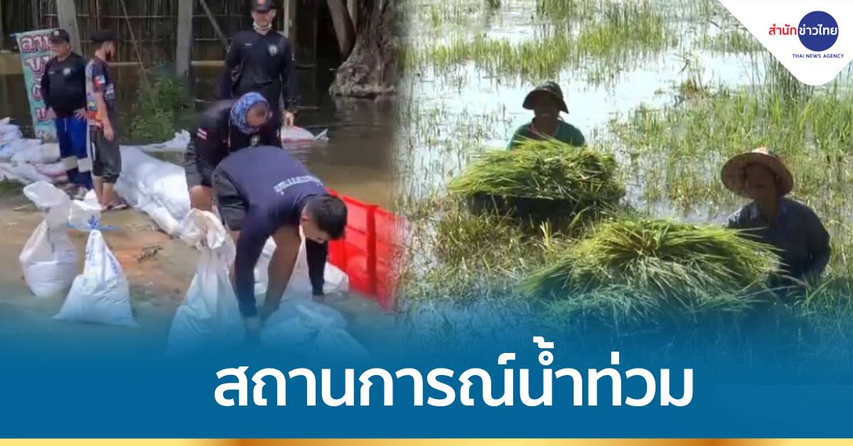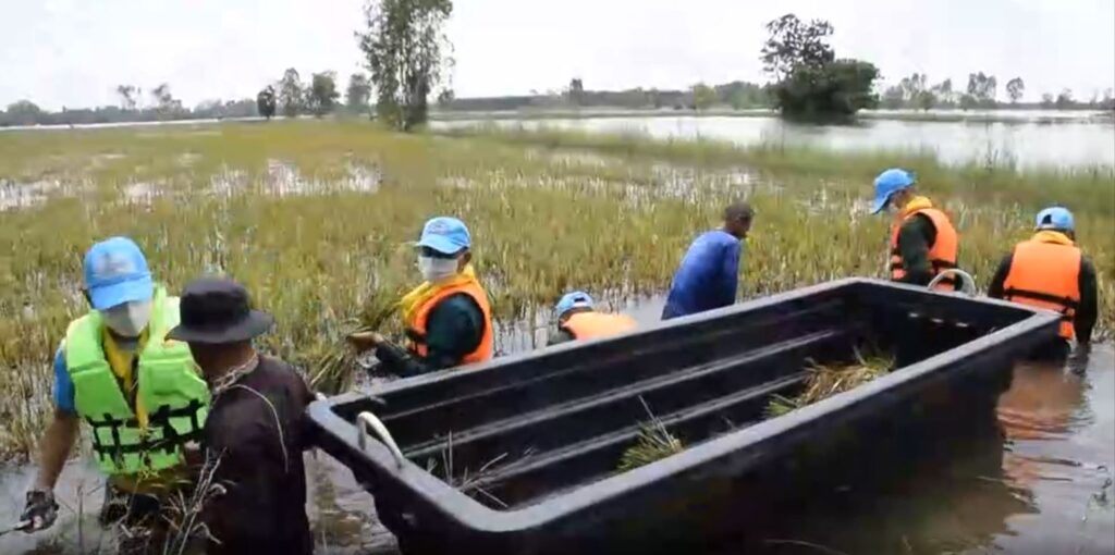 ทหารลุยน้ำช่วยชาวนาขอนแก่นเกี่ยวข้าวหนีน้ำท่วม