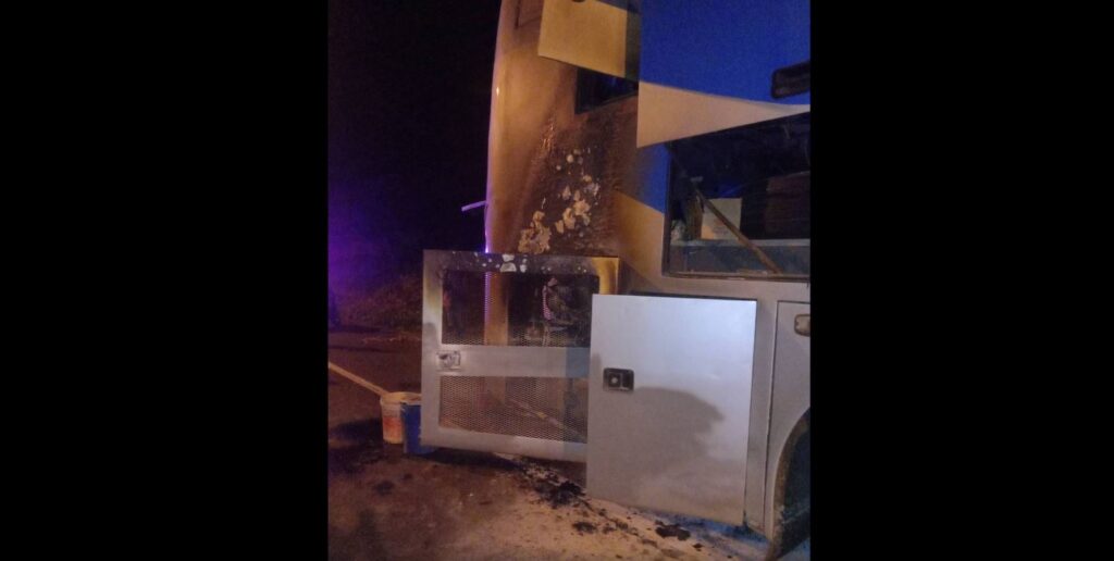 ที่เกิดเหตุพบรถทัวร์โดยสารสายกรุงเทพฯ-กระนวน-บ้านแพง หมายเลขทะเบียนกรุงเทพมหานคร จอดอยู่ริมถนนมิตรภาพ บริเวณท้ายรถพบเพลิงกำลังลุกไหม้ห้องเครื่องอย่างรุนแรง ผู้โดยสารนั่งมากับรถทั้งหมด 46 คน พร้อมด้วยคนขับ และพนักงานต้อนรับ ต่างพากันหนีเอาชีวิตรอด กระโดดหนีออกจากรถได้ทัน ขณะที่เจ้าหน้าที่ได้ช่วยกันฉีดน้ำดับเพลิงเพื่อไม่ให้ไฟลุกลามไหม้ตัวรถ ใช้เวลาประมาณ 20 นาที จึงควบคุมเพลิงเอาไว้ได้