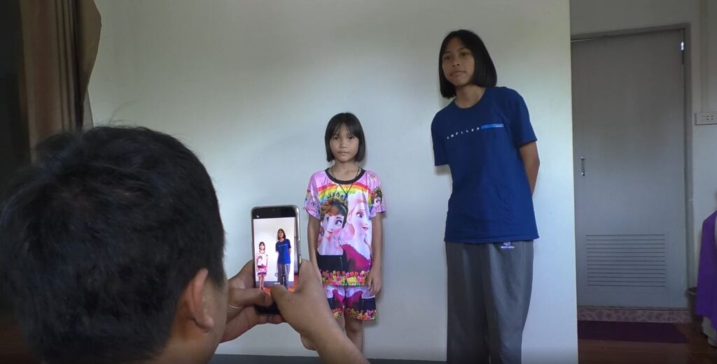 วันนี้นักข่าวไปพูดคุยกับน้องๆ ที่บ้านเซือม อ.อากาศอำนวย จ.สกลนคร น้องทับทิม หรือประกายดาว งอยกุดจิก อายุ 14 ปี นักเรียนชั้น ม.2 และน้องเก๋ไก๋ เกณิกา ขวาไขว อายุ 8 ปี นักเรียนชั้น ป.3 เล่าให้ฟังว่า เป็นลูกพี่ลูกน้องกัน อาศัยอยู่กับตายาย น้าและป้า พร้อมพาไปดูห้องที่อัดคลิป ซึ่งก็เป็นห้องนอนบนบ้านชั้น 2 น้องบอกบ้านติดถนน แต่ห้องนี้กันเสียงรบกวนได้ดี